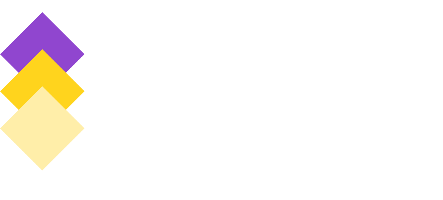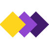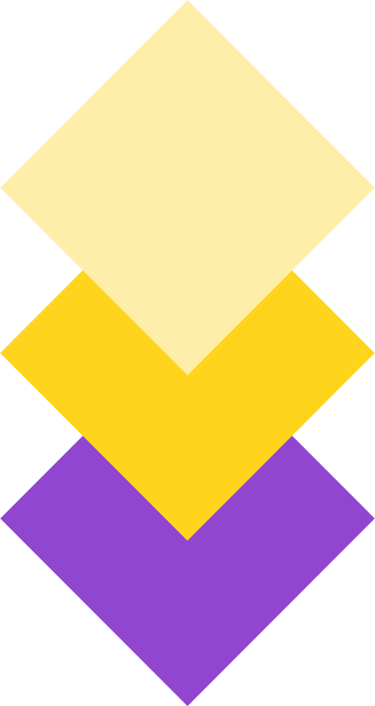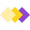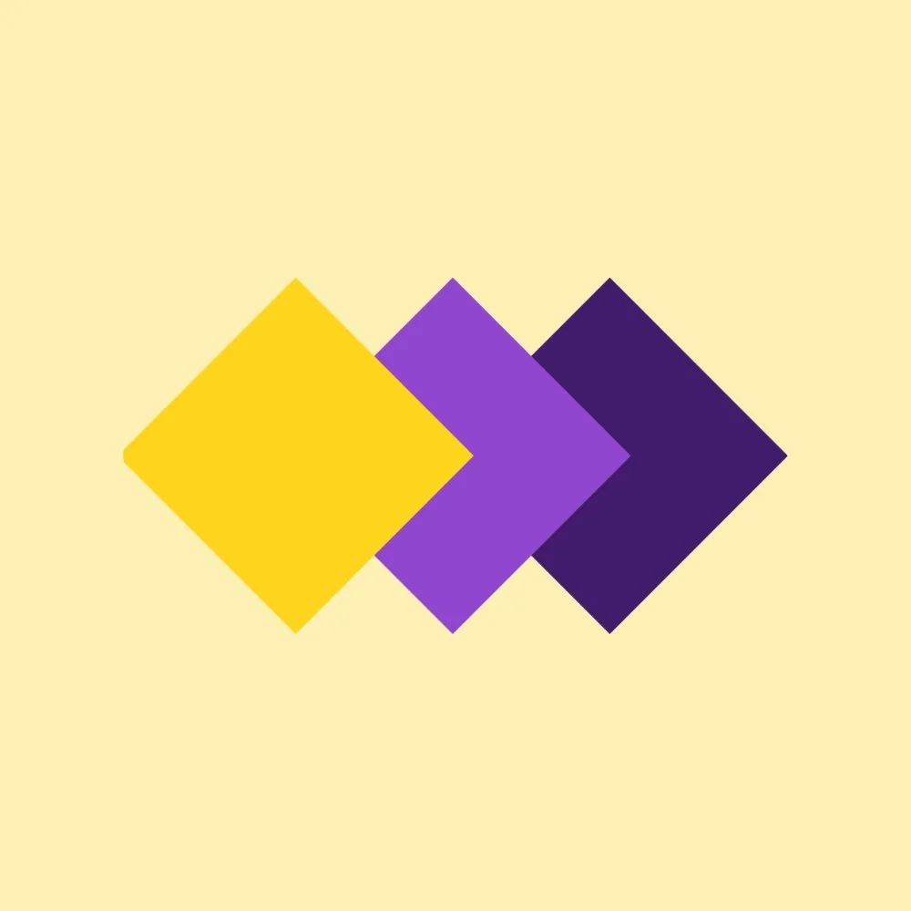 Three overlapping colored squares: yellow, purple, and dark purple on a light yellow background.